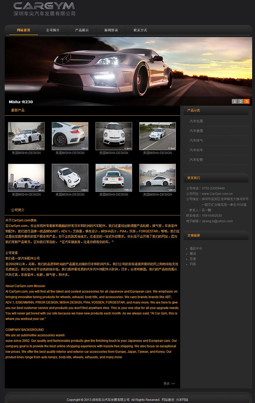 項目名稱:深圳車尖汽車發展有限公司網站建設簽定日期:2013年5月22日網址:http://www.cargym.com.cn在CarGym.com,你會發現所有最新和最酷的所有日本和歐洲的汽車配件。我們注重將創新調整產品輪轂,排氣管,車身