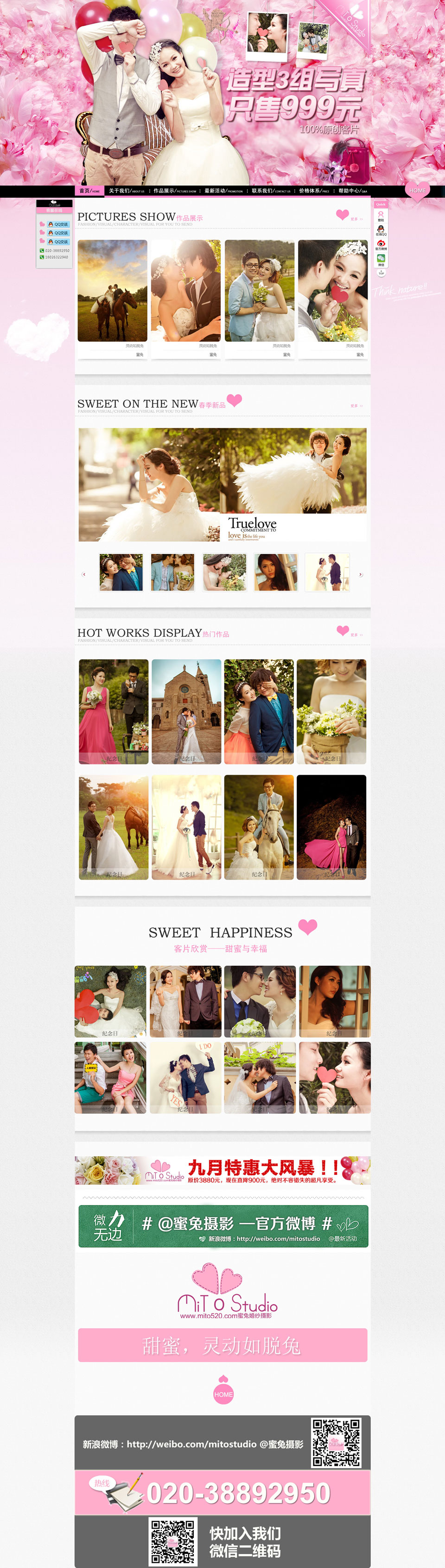 項目名稱:廣州蜜兔婚紗攝影工作室網站建設 項目網址:www.mito520.com 簽定日期:2013-8-16 網站首頁設計稿(縮略圖):